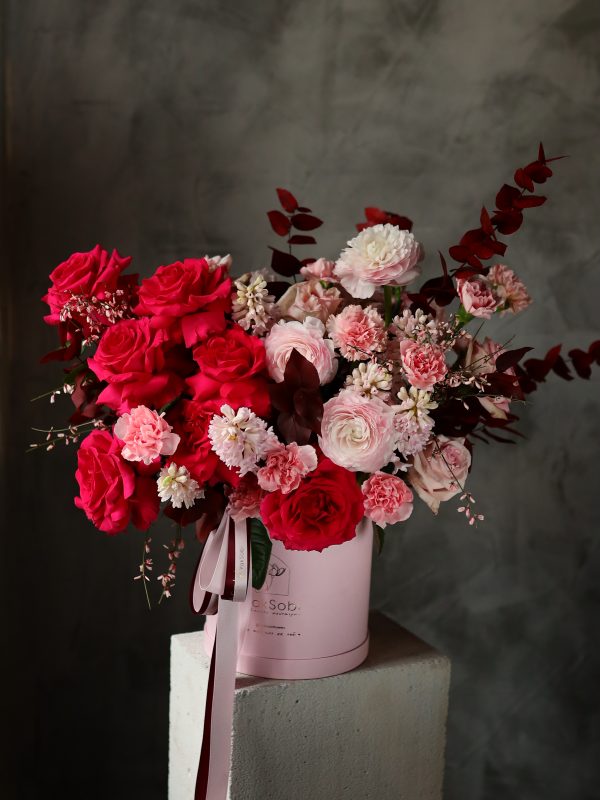 Букет авторський, до його складу входять сезонні квіти і в залежності від сезону, їх склад може змінюватись до 15% від загального складу квітів.